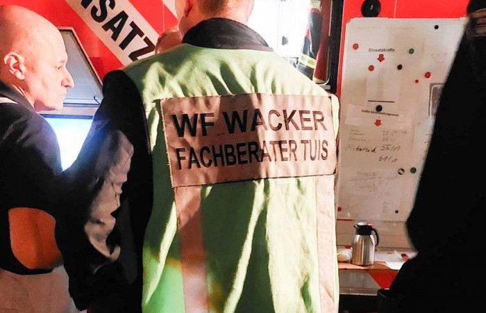 (Hier sei auch eine Anmerkung zu den gezeigten Bildern erlaubt, auf denen die Jacken der Schutzanzüge ausgezogen wurden: Es sei unseren Einsatzkräften bei Nachlöscharbeiten vergönnt, angesichts der vorherrschenden Temperaturen diese Erleichterung zu nutzen).