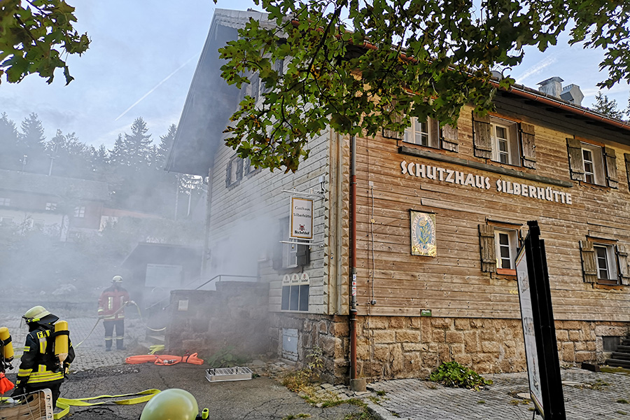 Eine starke Rauentwicklung war am frühen Samstag abend der Auslöser für ein Großaufgebot von Feuerwehr und Rettungsdienst am Schutzhaus Silberhütte.
