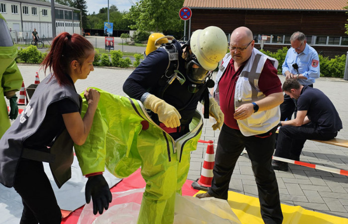 Mitte Mai stellten sich 8 Teilnehmer beim Lehrgang "Träger von Chemikalienschutzanzügen" der Prüfung. Die Teilnehmer aus den Feuerwehren Mitterteich, Tirschenreuth, Waldsassen und Wiesau mussten sich mit folgenden Themen auseinandersetzen: