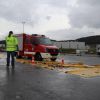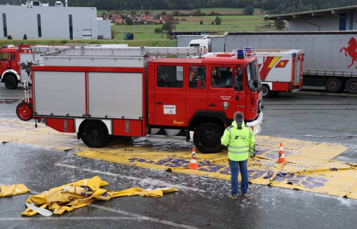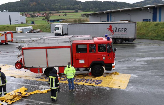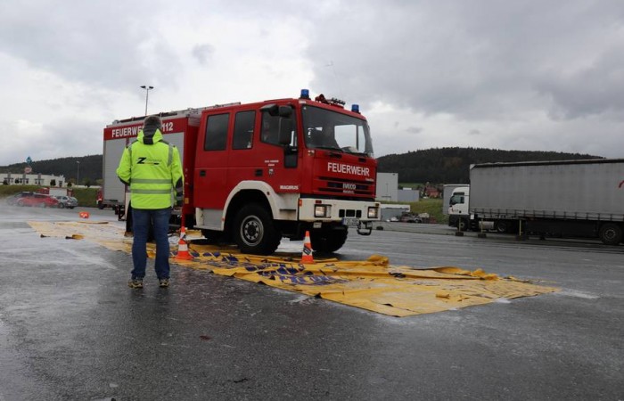 Abschließend konstruierte Zeilmann eine provisorische Rutschfläche. Darauf sollte jeder der Teilnehmer eine Gefahrenbremsung und im Anschluss eine Ausweichübung durchführen in der Geschwindigkeit steigernd, angefangen von 20 Stundenkilometern. Nachdem der Parkplatz wieder aufgeräumt war, die Absperrfläche beseitigt und die Einsatzfahrzeuge wieder abfahrbereit waren, überreichte Zeilmann die Urkunden zur erfolgreichen Teilnahme und gab den Maschinisten noch ein paar letzte gute Ratschläge mit auf dem Weg. Danach machten sich die acht Lastwagen im Konvoi auf den Heimweg.