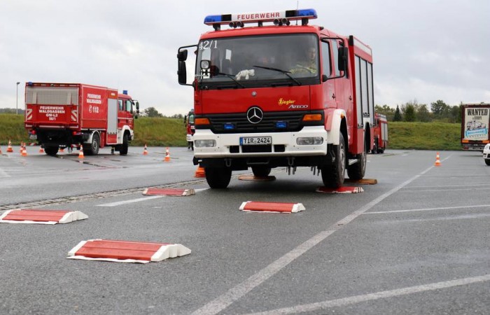 Mit dem Führerschein allein darf man deshalb noch nicht ans Steuer. In den Feuerwehren braucht man zusätzlichen den Lehrgang zum Maschinisten, denn der Fahrer ist zugleich der Mann an der Pumpe oder die Frau am Stromerzeuger. Und zusätzlich ist man noch für das Wohlbefinden der bis zu acht weiteren Kameraden im Fahrzeug sowie die weiteren, zivilen Verkehrsteilnehmer verantwortlich. Da muss man "sein" Fahrzeug kennen, wissen wie es sich auf verschiedenen Untergründen oder nasser, rutschiger Fahrbahn verhält, wie man richtig reagiert.