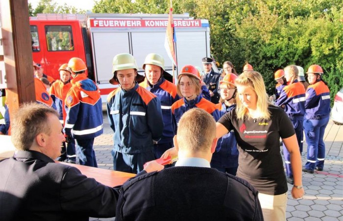 Der neue Kreisjugendwart Wolfgang Bauer berichtete, dass bei der knapp siebenstündigen Aktion zwölf Stationen mit theoretischen und praktischen Prüfungen zu bewältigen waren. „Die Jugendgruppen haben sie mit viel Bravour und Geschick gemeistert“, freute sich Bauer und dankte der gastgebenden Feuerwehr Konnersreuth, die ihr Gerätehaus für diese Großveranstaltung zur Verfügung gestellt hatte. Ein Dank für die Unterstützung galt den zahlreichen Helfern aus dem Kreisbrandmeisterbezirk von Albert Fröhlich und der Feuerwehr Waldsassen. Das größte Dankeschön ging an Kreisbrandmeister Dieter Höfer und dessen Schwester Martina, die alle Wettbewerbe auswerteten und die Siegerliste erstellten. „Es ist schön zu sehen, dass so viele junge Leute mit großer Begeisterung bei den Feuerwehren im Landkreis dabei sind“, sagte Wolfgang Bauer bei der Siegerehrung im voll besetzten Gerätehaus.