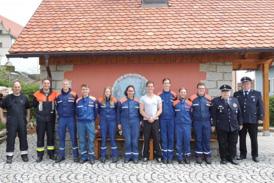 Im Bereich Löschtechnik musste ein Löschaufbau mit Schaum sowie eine Hindernisüberquerung per Leiterbock gemeistert werden. Im Erste-Hilfe-Teil wurden durch Darsteller aus der großen Wehr verschiedenste Unfälle und Verletzungen simuliert. Diese Situationen mussten dann durch die Jugendlichen mit Druckverband, stabiler Seitenlage, Beruhigen und Absetzen eines Notrufs und somit allen Facetten der Personenhilfe geklärt werden. Die sehr realistischen Darstellungen fühen manchmal bei dem einen oder anderen Teilnehmer in den ersten Sekunden der Übung zum Blackout, wie es auch bei realen Einsätzen durchaus vorkommen kann. Nach den Anlaufschwierigkeiten lieferten alle Teilnehmer gute Leistungen in der Ersten Hilfe ab. Bei der Themenarbeit referierte die gesamte Gruppe über den Stausee mit Wasserkraftwerk "Liebensteinspeicher". Dieser wurde bereits im März von der kompletten Gruppe mit einer interessanten Führung durch die Schaltzentrale mit Turbinenhaus besucht. Gegen 13 Uhr konnten nach einem lehrreichen, aber auch anstrengenden Vormittag die Kreisbrandmeister Wolfgang Bauer und Dieter Höfer den sieben Anwärtern das begehrte Abzeichen überreichen.