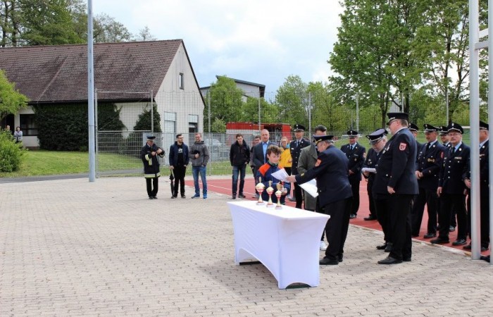 Kreisbrandmeister und Abnahmeberechtigter Dieter Höfer vollzog die Siegerehrung und gab die Wettbewerbsgesamtauswertung bekannt. Die Jugendfeuerwehr Tirschenreuth ergatterte mit 1427 Punkten den ersten Platz, gefolgt von der Jugendfeuerwehr Thanhausen mit 1403 Punkten. Den dritten Platz belegte die Jugendfeuerwehr Mitterteich mit 1390 Punkten. 1369,9 Punkte erreichte die Gruppe der Jugendfeuerwehren Atzmannsberg-Löschwitz mit 1369,9 Punkten und landete damit auf Platz vier. Neben den entsprechenden Bescheinigungen und dem Vermerk im Dienstbuch, so gab es auch Pokale.