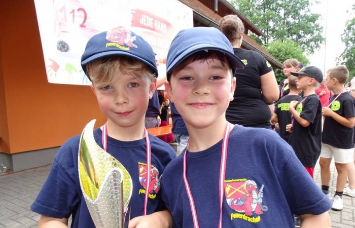 Nachdem alle Mannschaften ihre Laufzettel komplett abgestempelt zurückgaben, erhielten natürlich alle Kids sowie die Betreuerinnen und Betreuer Goldmedaillen. Für die insgesamt sieben Feuerwehren gab es noch je einen Pokal.