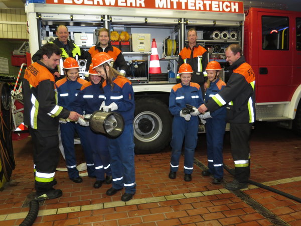 Geschenkt wird ihnen dabei nichts. "Es gibt auch keine Privilegien. Mädchen und Jungs werden gleich behandelt", betont Schmid. Carolina, Lisa, Lena und die Zwillinge Alena und Julia lassen sich überraschen, was in den nächsten Wochen auf sie zukommt. Viele Hürden in Form von praktischen und theoretischen Prüfungen stehen an, was neben der Schule zusätzlichen Lernstoff bedeutet. "Wer 50 Prozent der Fragen falsch beantwortet, ist durchgefallen", mahnt Grillmeier zum Fleiß. Theorie muss sein. Die Mädchen haben aber ein anderes, großes Ziel. Auf die Frage, was sie als angehende Feuerwehrfrauen am liebsten tun wollen, rufen alle gleichzeitig: "Feuerwehrauto fahren!" Da verdrehen der Jugendwart, der Vorsitzende und die beiden Kommandanten sichtlich amüsiert die Augen. Also wirklich: Davon war aber nicht die Rede, dass Mädchen auch noch "Feuerwehrauto-Fahrerinnen" werden wollen. "Das musst dann du übernehmen", wird diese große Herausforderung lachend dem Jugendwart zugeschoben.