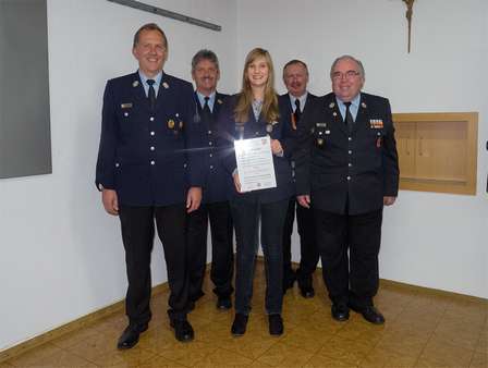 Heidrun Gollwitzer, aktives Mitglied der Feuerwehr Plößberg, wurde von Kreisbrandmeister Ausbildung Dieter Höfer als siebentausendste Teilnehmerin an einem Ausbildungslehrgang der Feuerwehren im Landkreis Tirschenreuth geehrt. Die Lehrgänge des Kreisfeuerwehrverbandes Tirschenreuth finden seit 1987 auf Landkreisebene statt und bilden u. a. Maschinisten, Truppführer, Sprechfunker und Motorsägenführer aus.