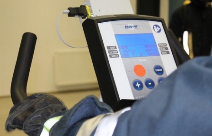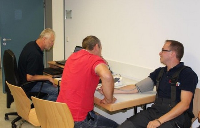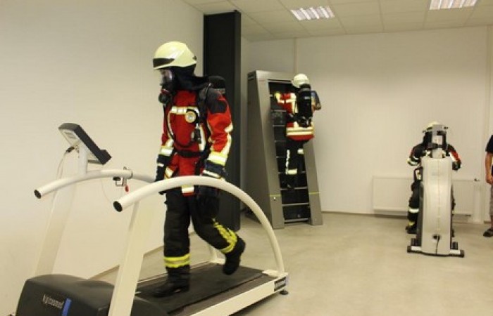 Die bestens vorbereiteten Ausbilder um KBM Harald Würner empfingen die beiden ersten Feuerwehren aus dem Landkreis Tirschenreuth. Nach der obligatorischen Blutdruck- und Pulsmessung erfolgte im Schulungsraum eine kurze Einweisung mittels einer Präsentation. Jeder Teilnehmer legte einen Brustgurt für die Messung der Herzfrequenz an. Mittels eines Transponsers am rechten Handschuh meldeten sich die Teilnehmer an den einzelnen Geräten bzw. anschließend am Übungsraum an. Durch diese Ausstattung ist gewährleistet, dass das Leistungsvermögen der einzelnen Übungsteilnehmer ständig überwacht wird. Im Leitstand haben die Ausbilder nicht nur den gesamten Übungsraum ständig im Blick, auf dem Monitor werden auch die aktuelle Herzfrequenz und die Ist-Leistungswerte von jedem Teilnehmer angezeigt. Nach Abschluss eines Durchgangs erhält jeder Teilnehmer einen Ausdruck mit seinen persönlichen Werten. Bereits jetzt ist klar, das neue gemeinsame Atemschutzzentrum Nordoberpfalz ist ein Gewinn für alle Atemschutzgeräteträger im Landkreis Tirschenreuth. Diese Atemschutzübungsstrecke bietet völlig neue Möglichkeiten bei der Aus- und Fortbildung der Atemschutzgeräteträger.