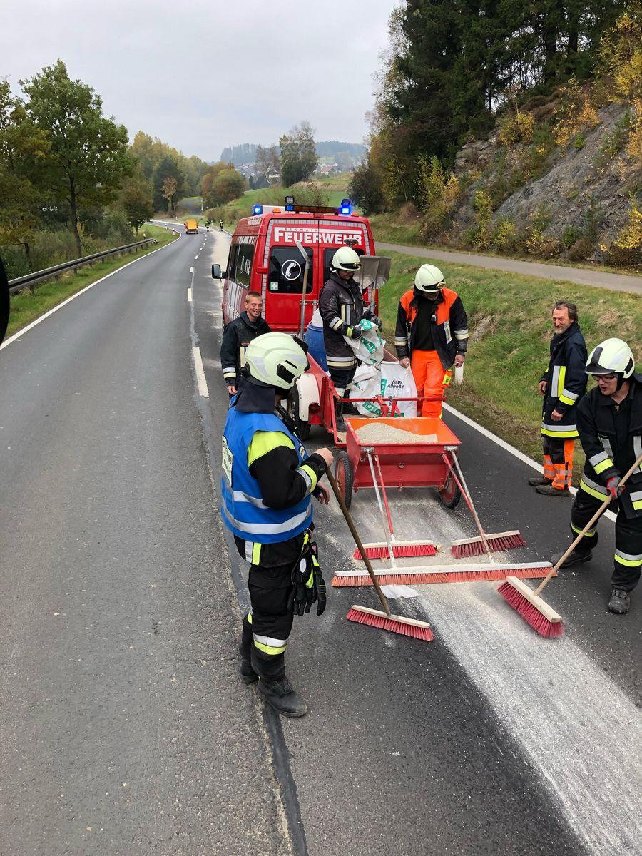 Aufgrund eines technischen Defektes an einem landwirtschaftlichen Gerät kam es zu einer rund 10 km langen Ölspur quer durch den Alten Landkreis Kemnath.. Die Feuerwehren Ebnath, Neusorg Riglasreuth, Kulmain, Oberwappenöst und Zinst waren rund 3 Stunden damit beschäftigt die Ölspur ab zu binden und zu beseitigen. Die Einsatzleitung lag dabei in den Händen von KBM Florian Braunreuther aus Kemnath Unterstützung erfuhren die Feuerwehrleute durch die Kehrmaschine des Bauhofes der Gemeinde Neusorg. Für die Beschilderung mit Öl Warntafeln zeigte sich als Straßenbaulastträger das staatliche Straßenbauamt verantwortlich.