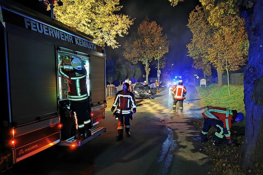 Eine lange Nacht für die Feuerwehr: Kaum waren die Einsatzkräfte der Feuerwehr Kemnath nach der technischen Hilfeleistung wegen des Wasserrohrbruchs auf dem Cammerloher Platz eingerückt, so wurden sie am Montagmorgen erneut zur Hilfe gerufen. Gegen 5.30 Uhr kam es in der Wunsiedler Straße in Kemnath zu einem Verkehrsunfall mit einem beteiligten Fahrzeug. Mit der Einsatzmeldung „Verkehrsunfall, Fahrzeug gegen Baum“ wurden Feuerwehr, Rettungsdienst und Polizei alarmiert.