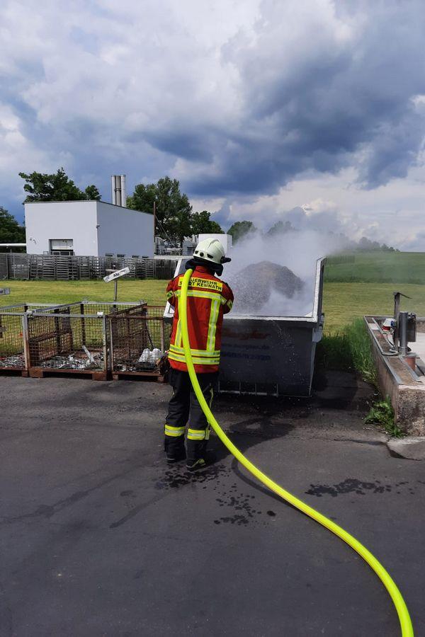 Containerbrand auf Firmengelände / Feuerwehr bemerkt Containerbrand