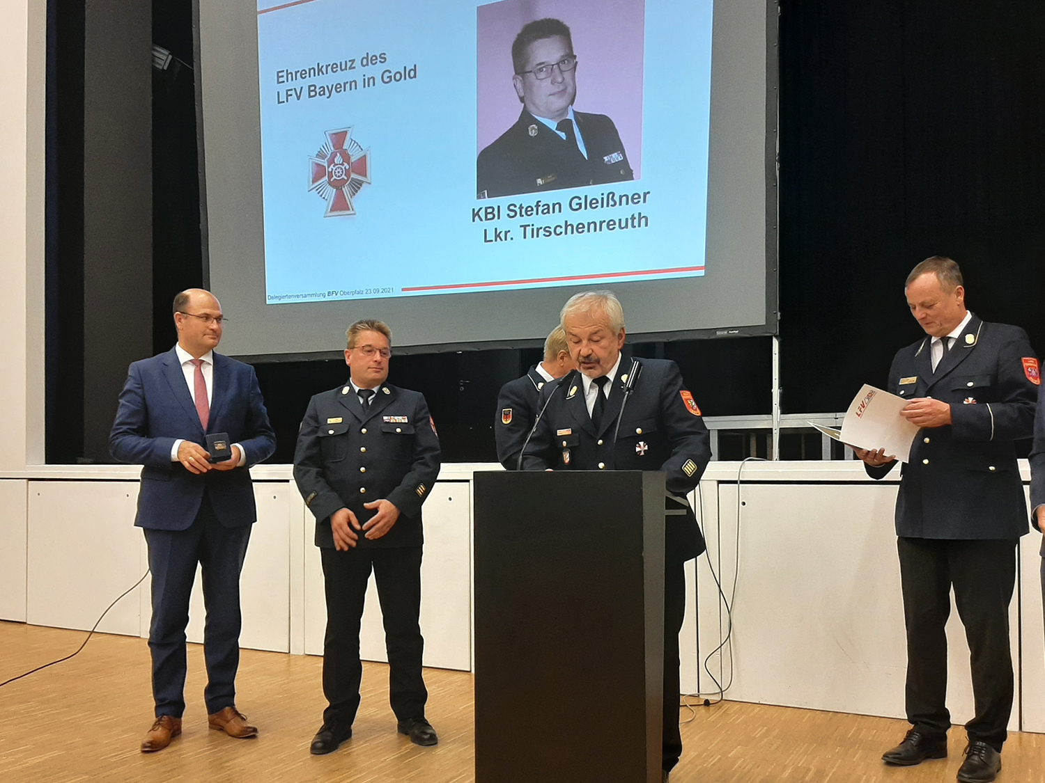 KBI Stefan Gleißner wurde auf Vorschlag des Kreisfeuerwehrverbandes Tirschenreuth mit dem goldenen Ehrenkreuz des Landesfeuerwehrverbandes ausgezeichnet.
