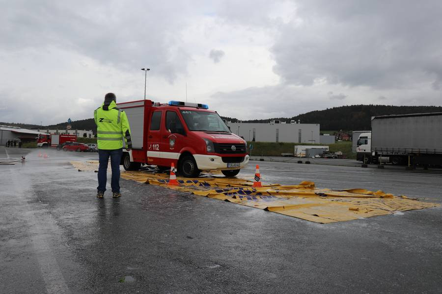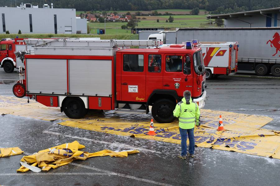 Abschließend konstruierte Zeilmann eine provisorische Rutschfläche. Darauf sollte jeder der Teilnehmer eine Gefahrenbremsung und im Anschluss eine Ausweichübung durchführen in der Geschwindigkeit steigernd, angefangen von 20 Stundenkilometern. Nachdem der Parkplatz wieder aufgeräumt war, die Absperrfläche beseitigt und die Einsatzfahrzeuge wieder abfahrbereit waren, überreichte Zeilmann die Urkunden zur erfolgreichen Teilnahme und gab den Maschinisten noch ein paar letzte gute Ratschläge mit auf dem Weg. Danach machten sich die acht Lastwagen im Konvoi auf den Heimweg.