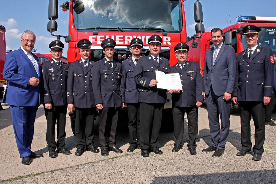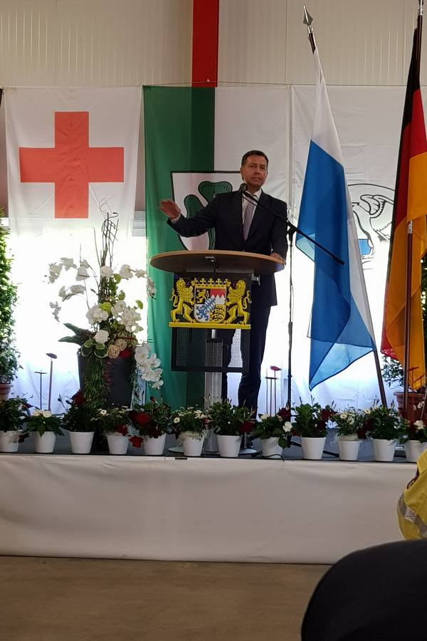 Für eine effektive Krisenbewältigung brauche es daher motivierte Einsatzkräfte in guter Stärke, fundierte Ausbildung, praktikable Einsatzkonzepte und eine gute Ausstattung. Hierbei sei der Bund und Freistaat gleichermaßen gefordert. „Die Sicherheit unserer Bevölkerung hat oberste Priorität. Sie ist die Grundlage unseres Freiheitsgefühls. In Bayern leben heißt sicherer leben.“, erörterte der Innenminister. „Es nützen die besten Fahrzeuge nichts, wenn Menschen, die wie Sie so beherzt anpacken, ihren Mitmenschen in der Not helfen“, sagte der der Bayerische Staatsminister des Inneren und für Integration, Joachim Herrmann und zollte den anwesenden Rettungskräften in Sinne aller rund 450.000 Einsatzkräften Bayerns seinen Dank.