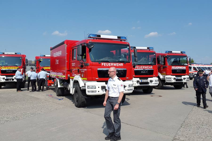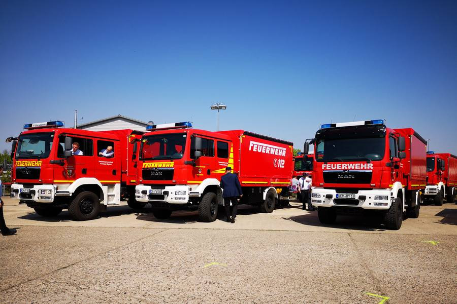 Darunter zählen zwölf Versorgungslastkraftwagen mit modularem Gerätesatz Hochwasser (MGH), zwölf Sanitäts-Gerätewägen und 30 Krankentransportwagen. Zudem wurde durch den Bund der Fahrzeugbestand des Technischen Hilfswerks aufgewertet durch Mannschaftstransporter, einem Bagger und mehreren Lastwägen. Auch einige Feuerwehren erhielten vom Bund „Katastrophenschutz-Löschfahrzeuge“. „Von dieser modernen Ausstattung profitieren unsere Bürgerinnen und Bürger im Notfall“, so der Innenminister.