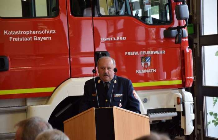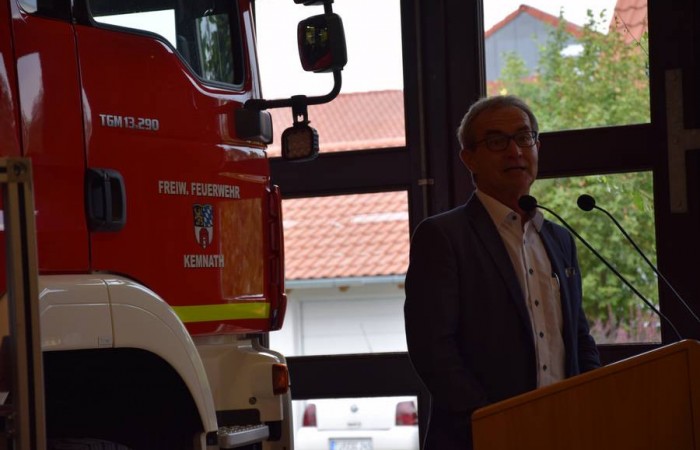 Landrat Wolfgang Lippert merkte in seiner Festansprache an, dass solche Unwetterereignisse, welche entsprechendes Gerät und bereitwillige Hilfskräfte fordern, überall auftreten können. „Das Thema Hochwasser ist auch im Landkreis Tirschenreuth ein Thema“, erörterte Lippert. Dabei ging der Landrat auf die Wetterphänomene mit lokal beschränkten Niederschlägen ein. Erfreut zeigte er sich, dass sich die Freiwillige Feuerwehr Kemnath bereiterklärt habe, das Fahrzeug und die Ausrüstung bei ihnen zu stationieren. Dadurch erhöhe sich die Schlagkräftigkeit enorm. Er wünschte dennoch „möglichst wenig Einsätze“.