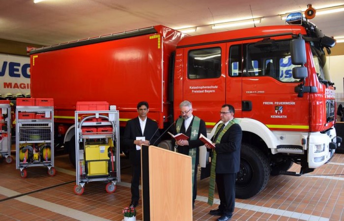 „Die Solidarität und Bereitschaft, sich für andere einzusetzen, geht immer mehr zurück. Die Erwartungshaltung und das Hilfeersuchen werde aber immer höhergeschraubt.“, merkte der Stadtpfarrer an. „Dazu werden dann auch noch Rettungsaktionen durch Gaffer behindert und Rettungskräfte, welche anderen zu Hilfe eilen, durch tätliche Angriffe attackiert und die Retter selbst zu Opfern.“, gab der Stadtpfarrer weiter zu bedenken. Die drei Geistlichen segneten das Fahrzeug und die Ausrüstung und stellten auch die Feuerwehrkameradinnen und -kameraden unter den Segen und Schutz Gottes.
