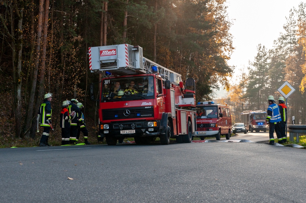 liebensteiner 2018 019Am Samstag, den 10.11.2018 erfolgte gegen 14:00 Uhr Großalarm für 14 Feuerwehren aus dem östlichen und mittleren Landkreis Tirschenreuth. Etwa 200 Einsatzkräfte wurden nach Liebenstein bei Plößberg entsendet, um bei einem dort ansässigen Industriebetrieb mehrere Einsatz-Szenarien zu bewältigen.