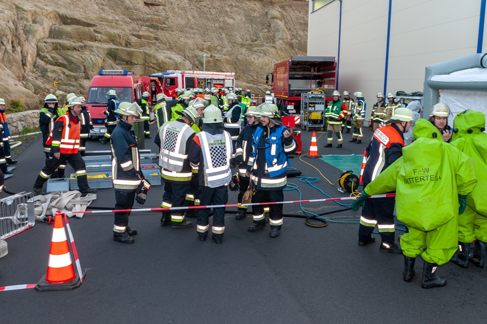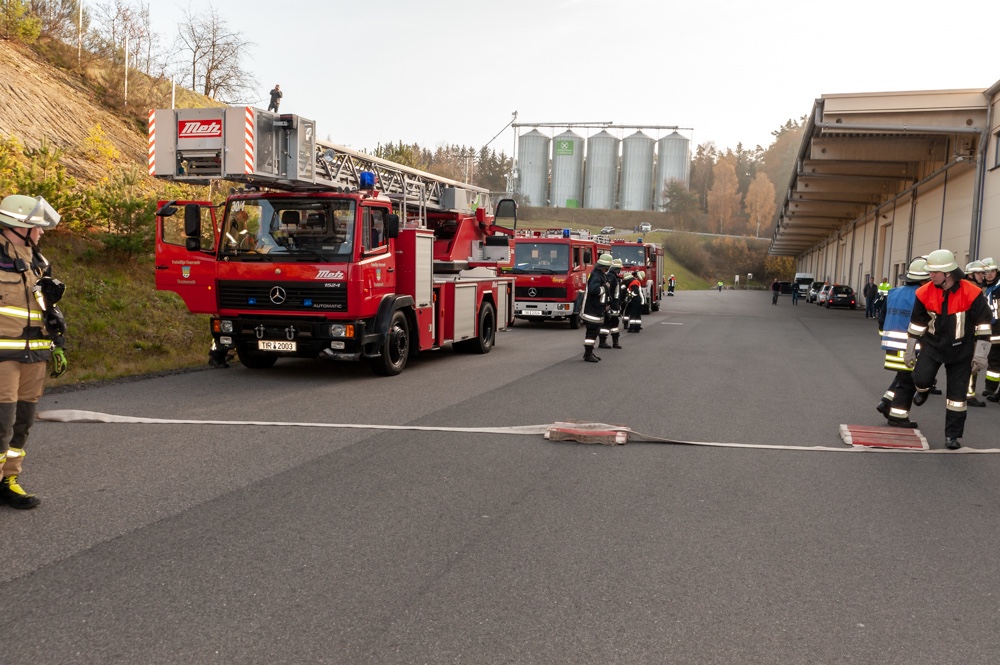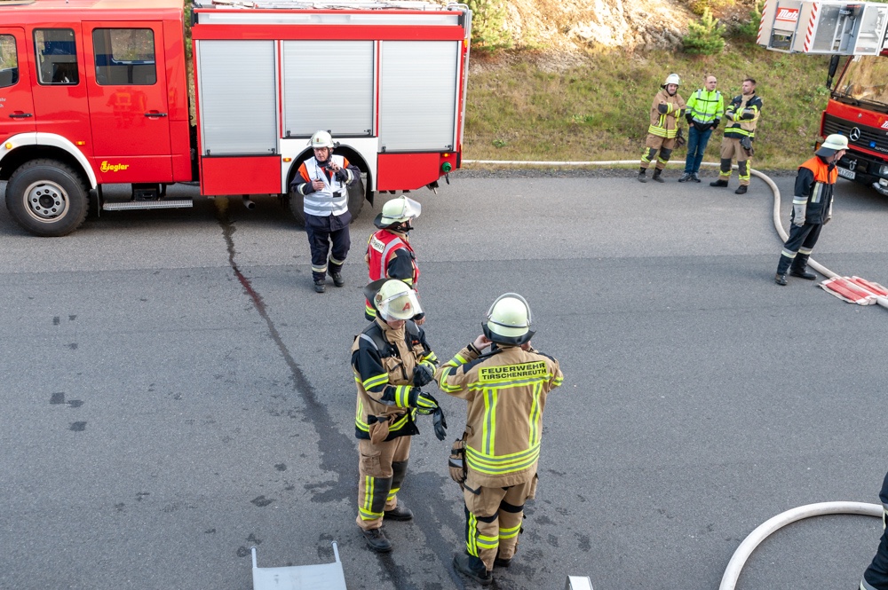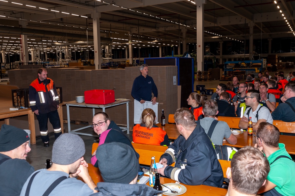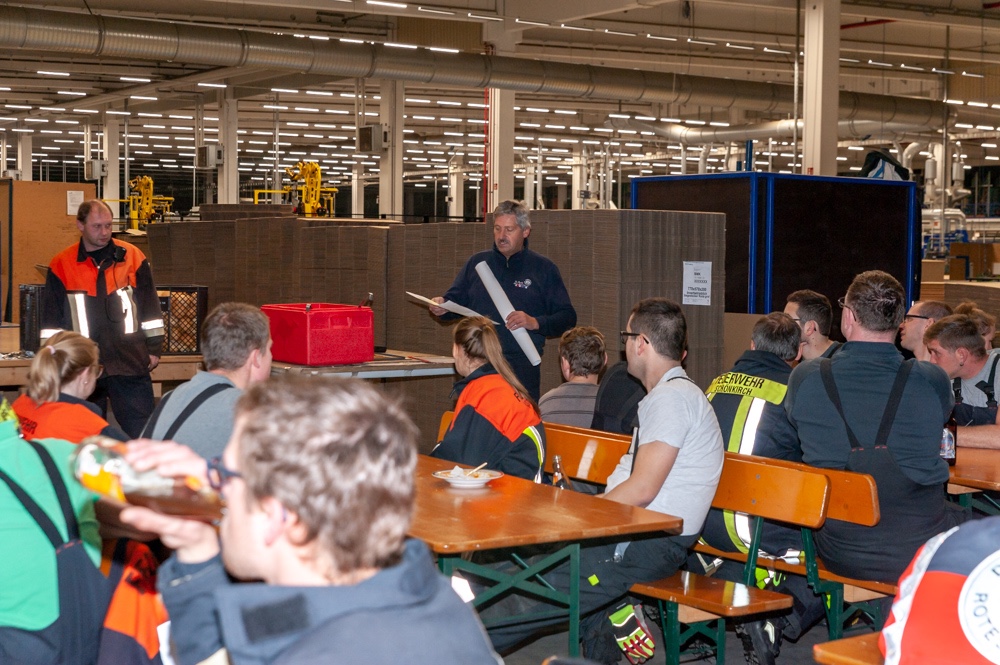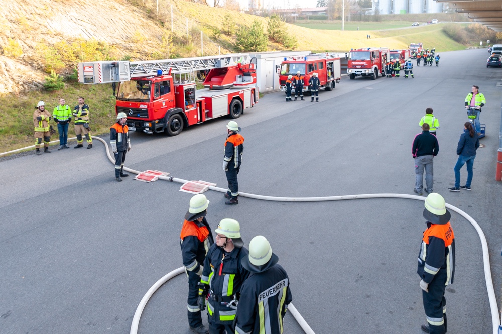 Besonderer Dank galt auch der Geschäftsführung des Unternehmens, welches diese doch sehr aufwändige Übung erst möglich gemacht hatte. Die Feuerwehren bedanken sich in diesem Zusammenhang auch für die bereitgestellte Brotzeit nach Übungsende.