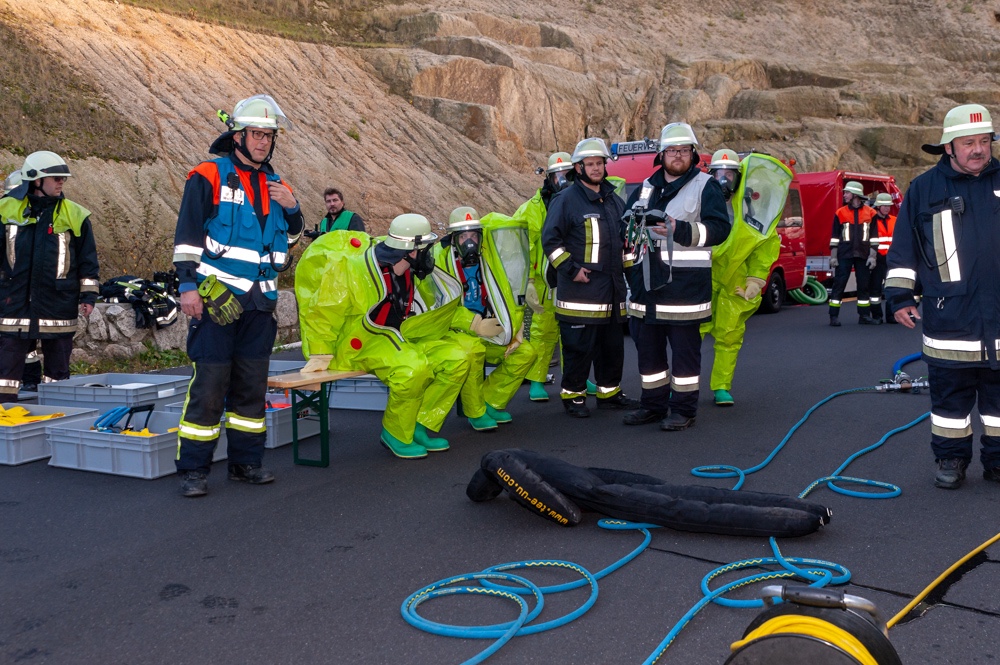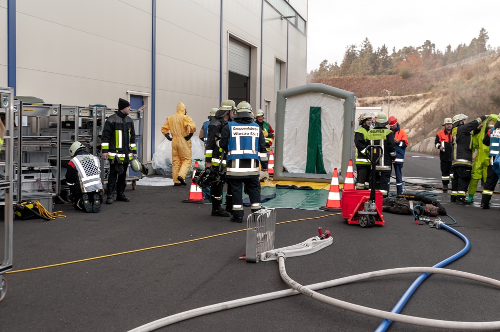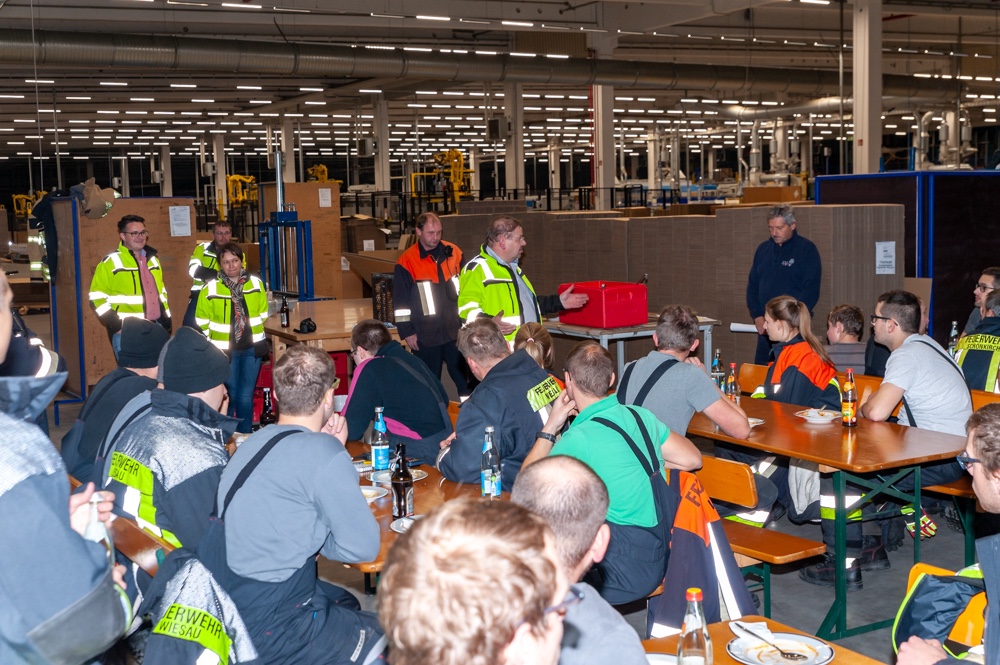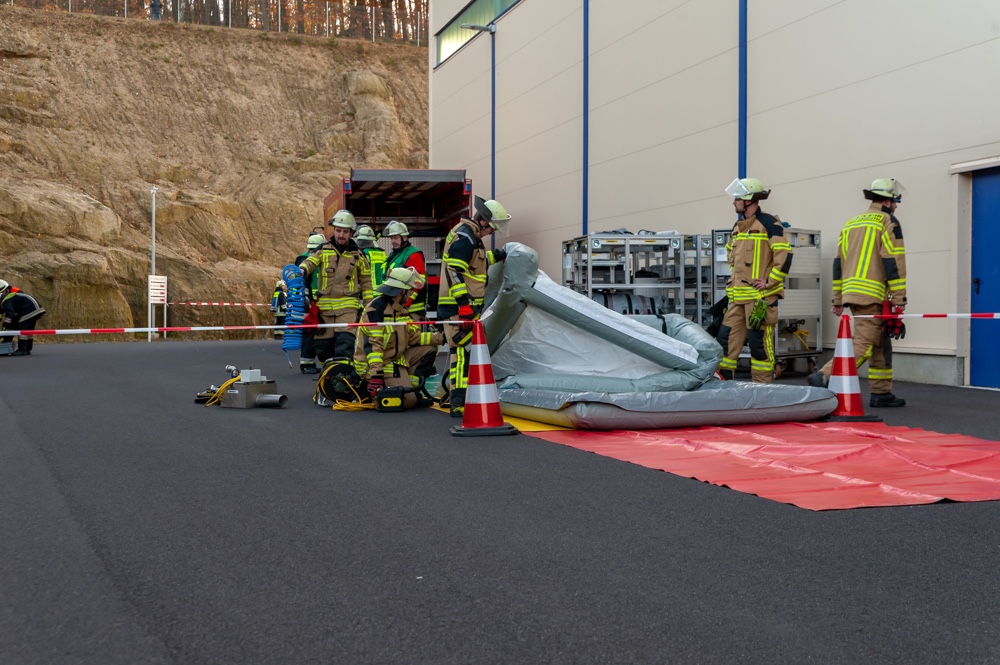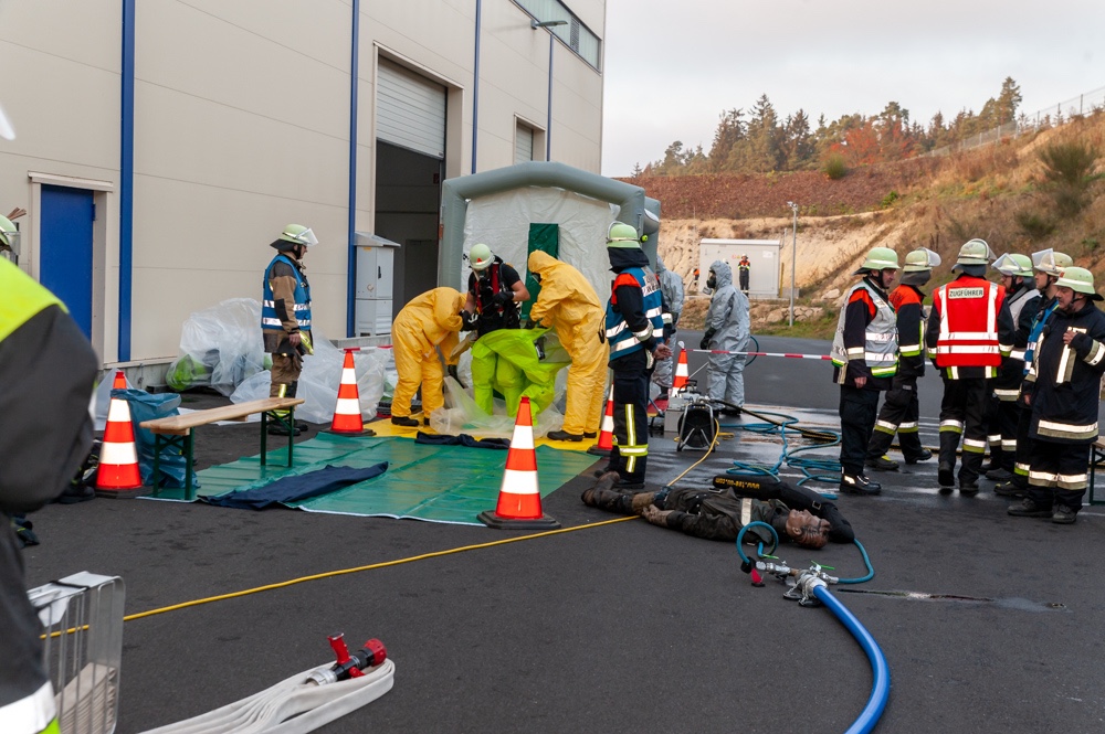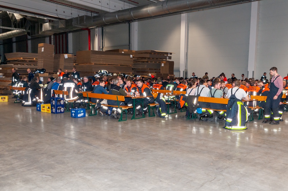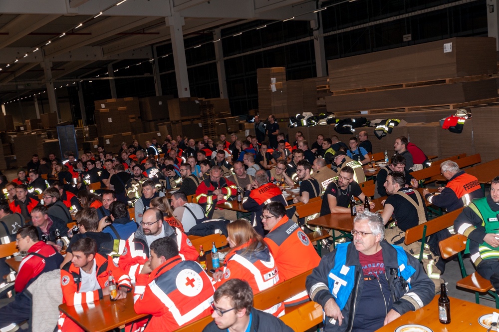 Besonderer Dank galt auch der Geschäftsführung des Unternehmens, welches diese doch sehr aufwändige Übung erst möglich gemacht hatte. Die Feuerwehren bedanken sich in diesem Zusammenhang auch für die bereitgestellte Brotzeit nach Übungsende.
