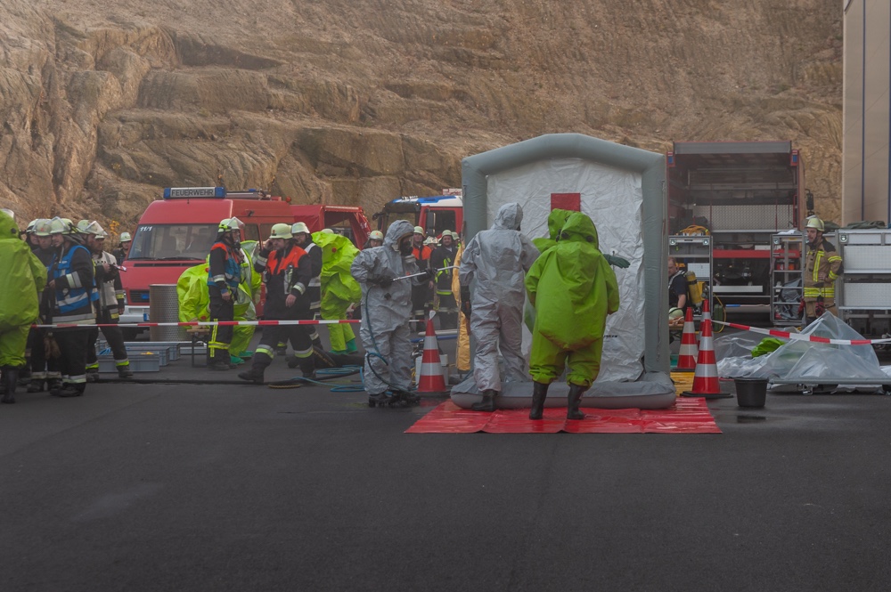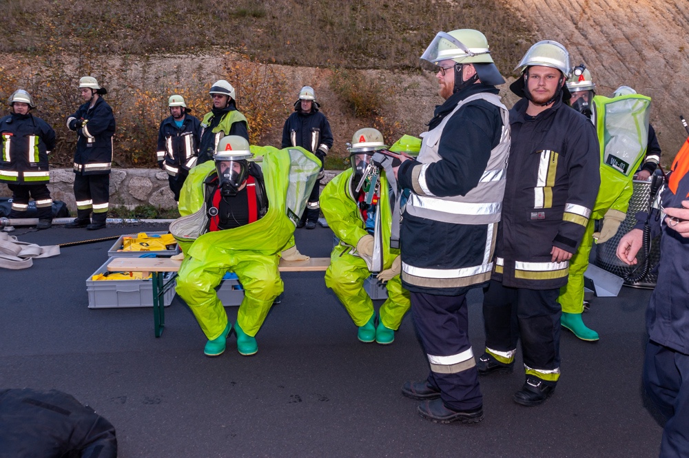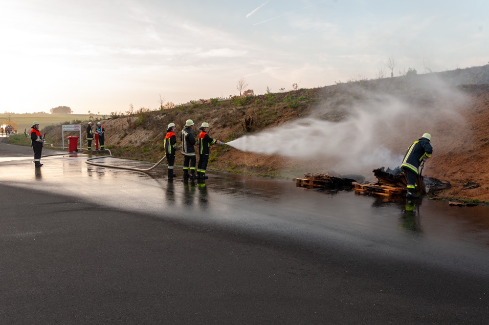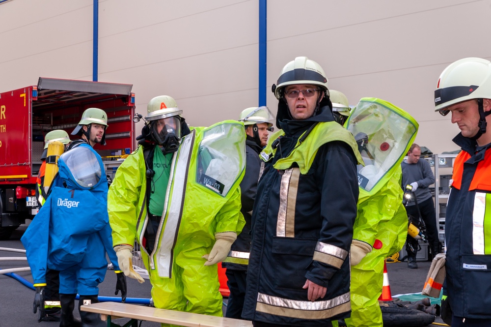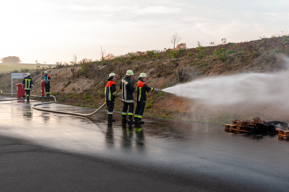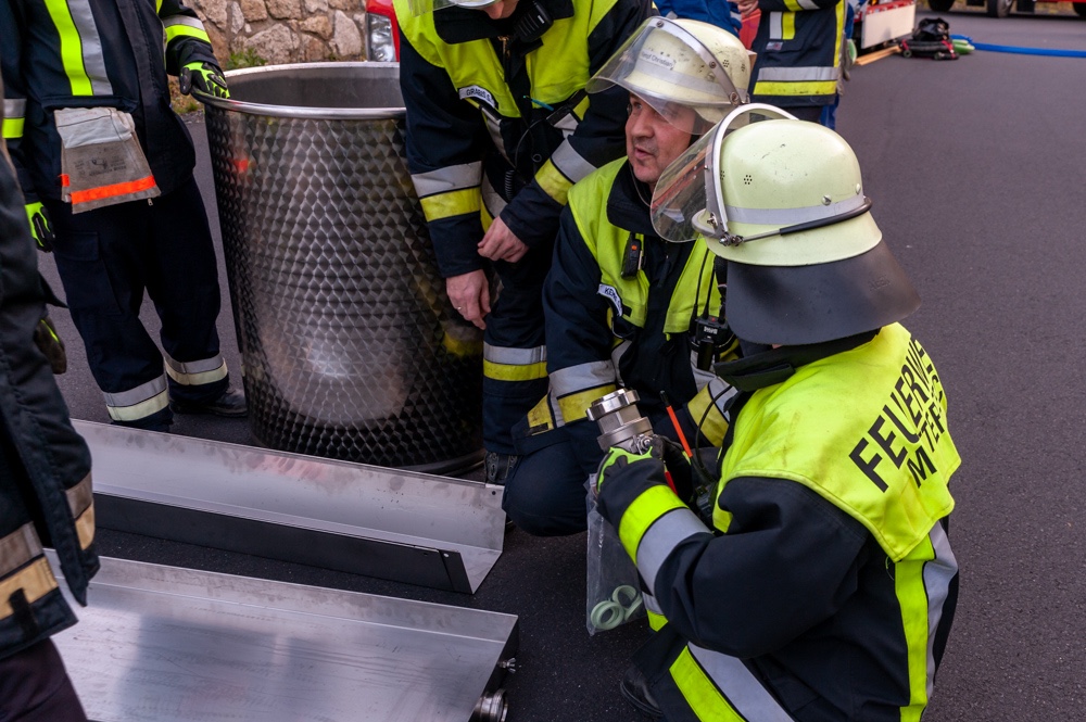 Besonderer Dank galt auch der Geschäftsführung des Unternehmens, welches diese doch sehr aufwändige Übung erst möglich gemacht hatte. Die Feuerwehren bedanken sich in diesem Zusammenhang auch für die bereitgestellte Brotzeit nach Übungsende.