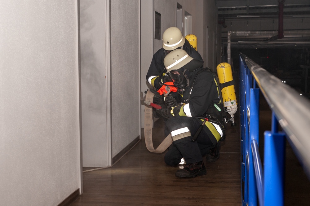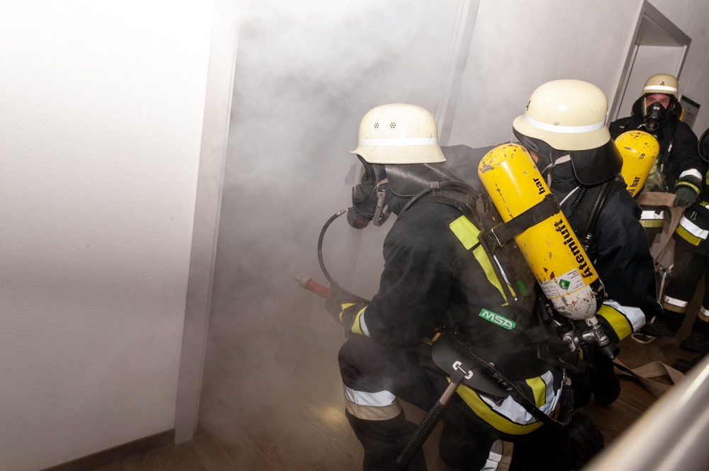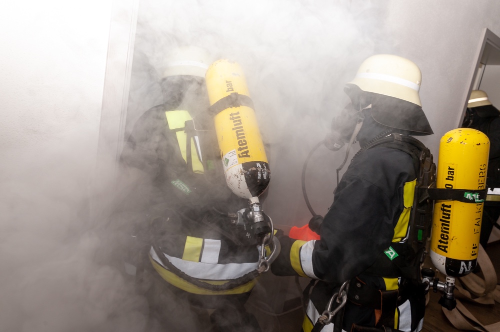 „Zimmerbrand im ersten Obergeschoß, Personen in Gefahr“