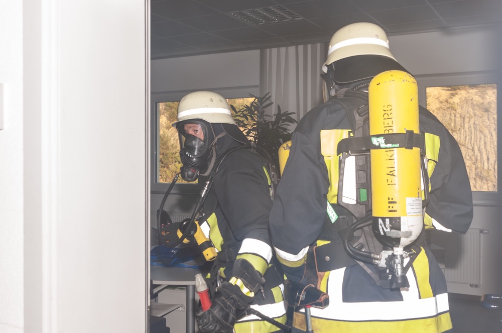 Parallel zu den Löscharbeiten im Abschnitt 1 erreichte die Einsatzkräfte ein weiterer Notruf: In einem ca. 300 Meter entfernten Betriebsbereich brach in einem Büro ein Feuer aus, mehrere Personen wurden noch im Gebäude vermutet. Kräfte der Feuerwehren Bärnau, Tirschenreuth, Schwarzenbach und Falkenberg eilten zur Brandstelle und gingen zum Innenangriff unter schweren Atemschutz in das Gebäude vor, retteten mehrere Personen über das Treppenhaus und löschen den Brandherd ab.