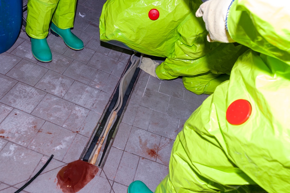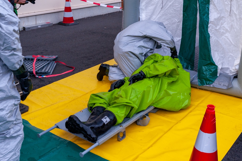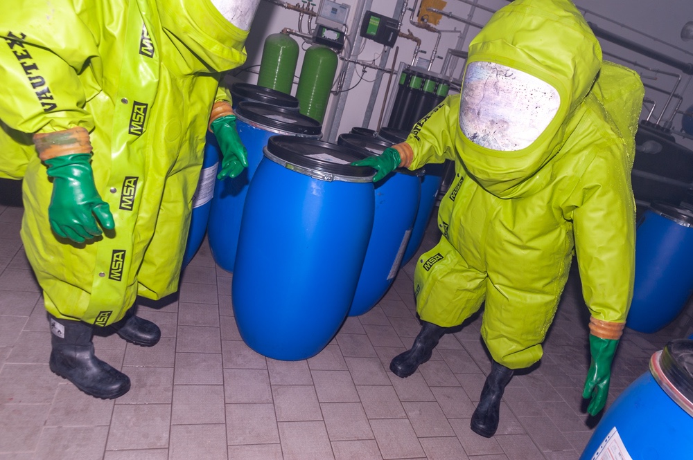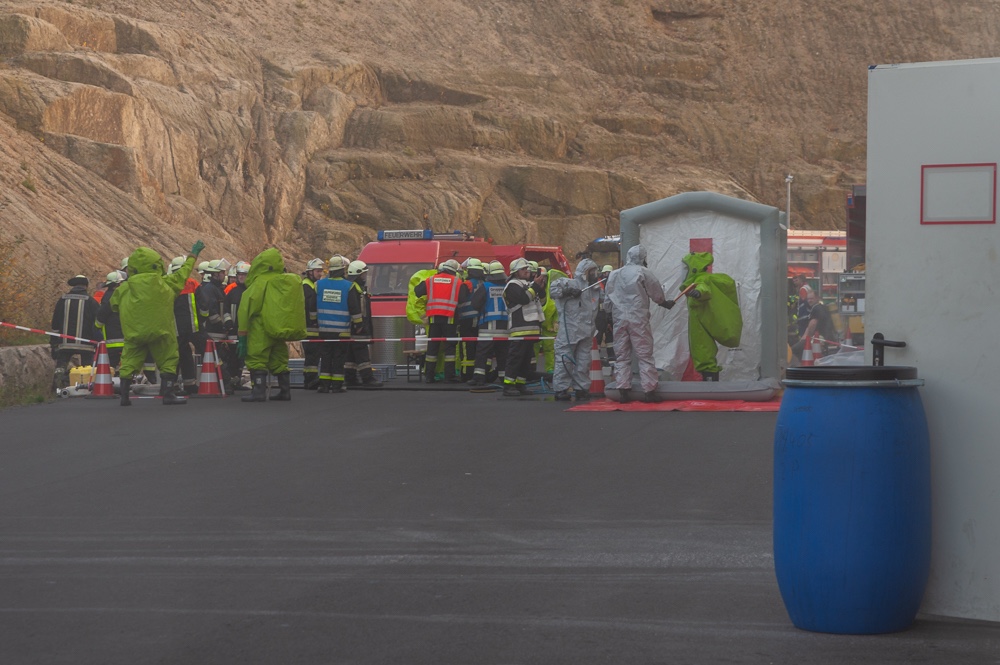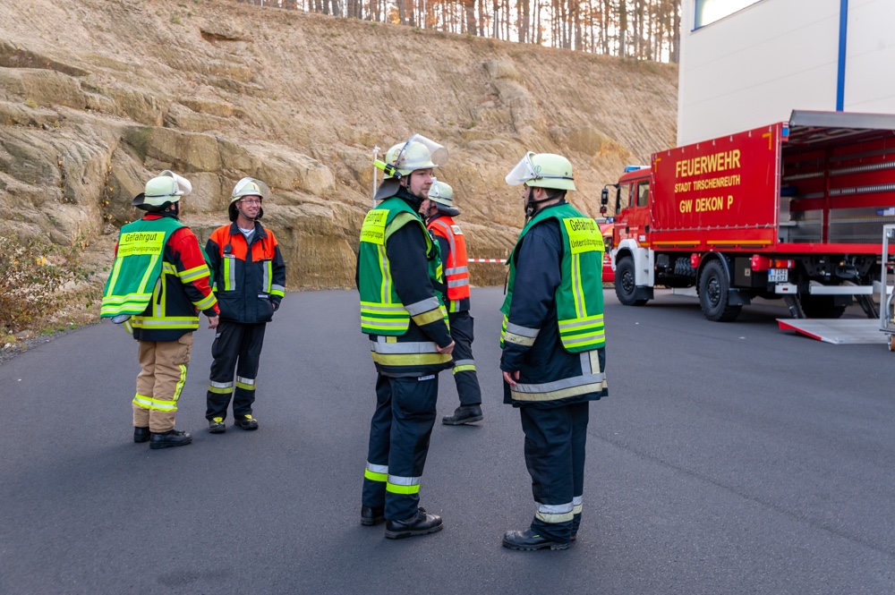 Aufgrund der Lagemeldung und des zu erwartenden Gefahrguteinsatzes ging man davon aus, hier schwere Chemikalienschutzanzüge  einsetzen zu müssen, weshalb von der Feuerwehr Tirschenreuth auch ein so genannter Dekontaminationsplatz zur Reinigung und Dekontaminierung der Einsatzkräfte und evtl. verletzter Personen eingerichtet wurde. Zudem wurde gleichzeitig auch eine Absperrung nach den Regeln eines Gefahrguteinsatzes installiert und der Raum entsprechend eingeteilt und geordnet.