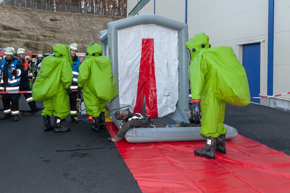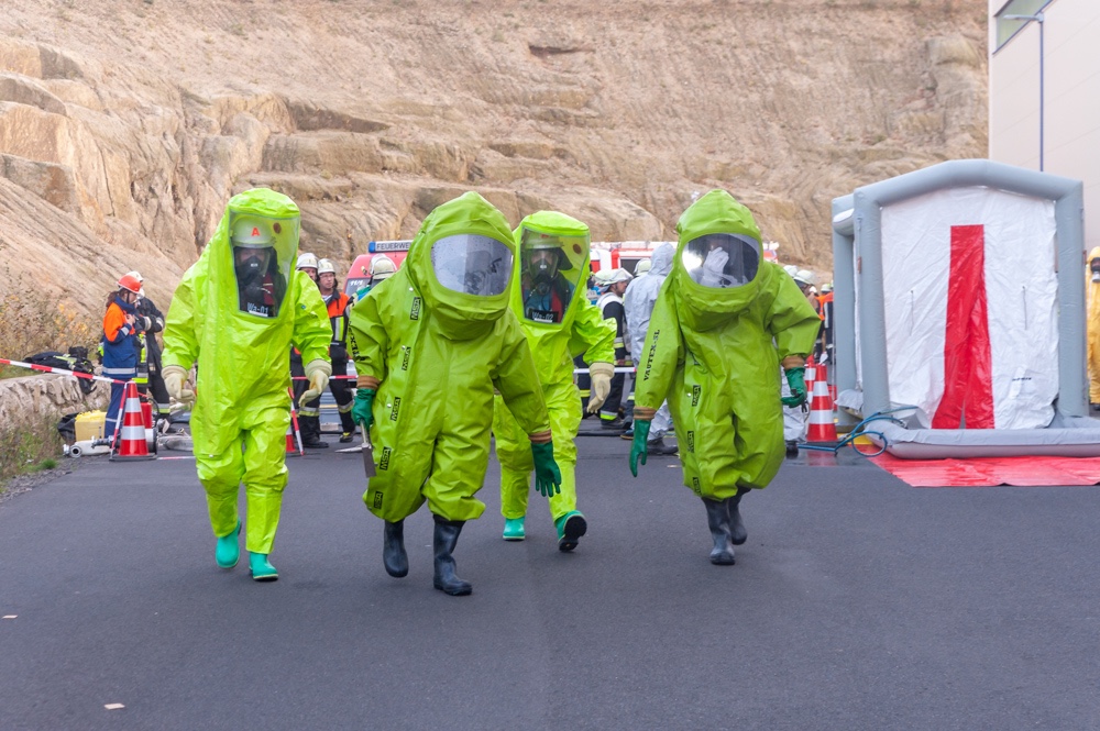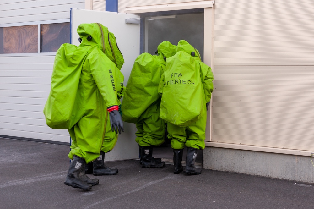 liebensteiner 2018 065Mehrere Trupps unter Chemieschutz (CSA) gingen in das Gebäude vor und konnten so eine erste Beurteilung der vorgefundenen Lage an die ebenfalls bereitstehende Unterstützungsgruppe Einsatzleitung (UG-ÖEL) zur weiteren Einsatzentscheidung übermitteln. Als Einsatzleiter dieses Abschnitts fungierte der Fachberater für Gefahrgut im Landkreis Tirschenreuth, Fritz Leicht, welcher von seinem Team, der UG Gefahrgut und der UG ÖEL, unterstützt wurde.