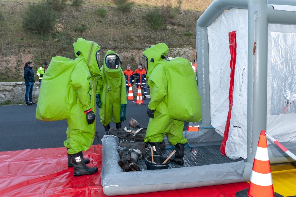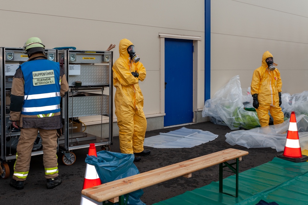 Den Brandschutz am Dekontaminationsplatz übernahm die Feuerwehr Plößberg.