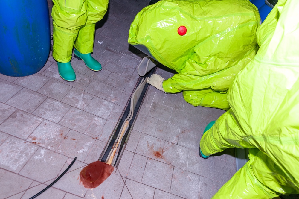 Um ein Austreten der Gefahrstoffe in die Kanalisation zu vermeiden, wurden die Kanalöffnungen mit Hilfe von Ausrüstung des Gefahrgutanhängers des Landkreises Tirschenreuth, welcher bei der Feuerwehr Mitterteich stationiert ist, abgedichtet.