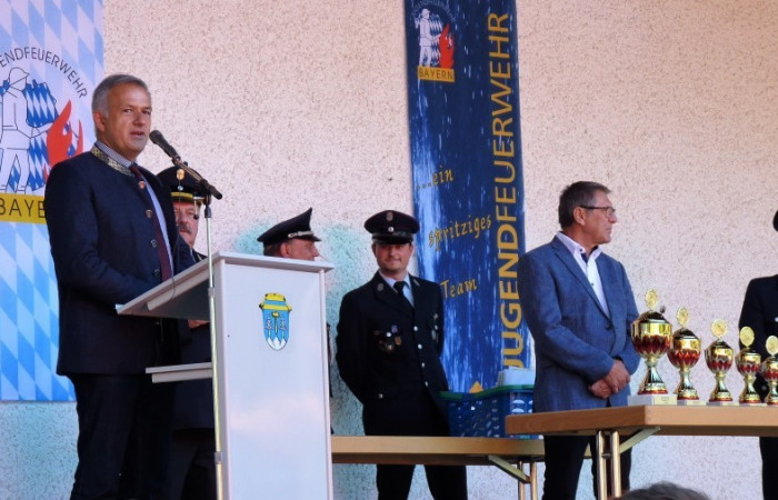Die Grußworte wurden durch den Kreisbrandinspektor Otto Braunreuther für die Kreisinspektion gesprochen. Er überbrachte auch die besten Grüße von den leider verhinderten Kreisbrandrat Stefan Gleissner, dem Landrat Roland Grillmeier und dem Bürgermeister Roman Schäffler. Grußworte für die Bezirksjugendfeuerwehr sprach Mirjam Schuller für den erkrankten Bezirksjugendwart Peter Stahl.