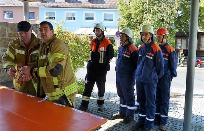 Die zwei Jugendanwärter der Feuerwehr Naab und drei aus Hohenthan wurden bei mehreren Übungen auf die Abnahme vorbereitet. Diese erfolgte durch die Schiedsrichter, Kreisbrandinspektor Lorenz Müller, Kreisjugendwart Wolfgang Bauer und Kreisbrandmeister Helmut Czepa.