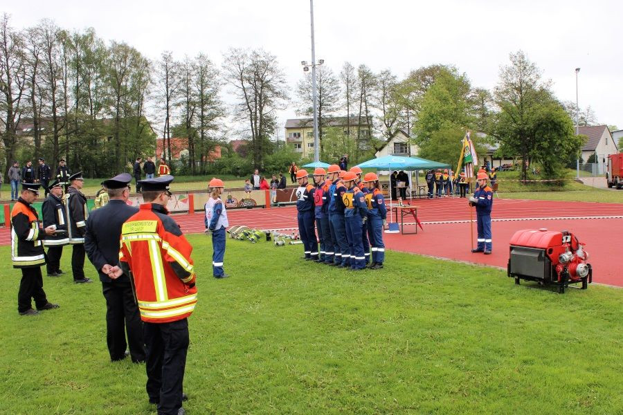 Da nur vier Mannschaften des Landkreises Tirschenreuth zum Kreisentscheid des Bundeswettbewerbs der Deutschen Jugendfeuerwehr angetreten waren, kamen folglich nicht nur alle teilnehmenden Mannschaften zum Bezirksentscheid weiter, sondern auch die Durchführung verkürzte sich, sodass bereits zur Mittagszeit die Siegerehrung auf dem Freisportgelände in Kemnath durchgeführt wurde. „Leider war das Wetter nicht das Beste. Umso besser waren eure Leistungen hier beim Kreisentscheid in Kemnath“, würdigte Kreisjugendfeuerwehrwart Wolfgang Bauer. „Man kann sagen, dass die Zeit des Übens sich durchaus bezahlt gemacht hat. Eure guten Leistungen sind auch die Belohnung für uns.“ betonte Bauer.