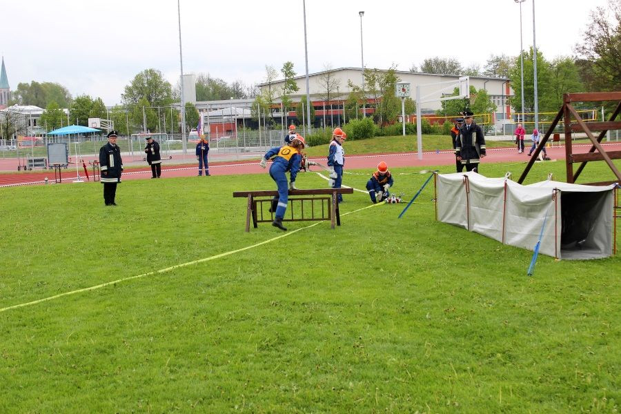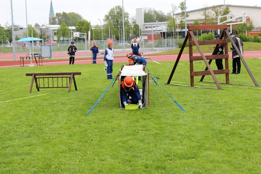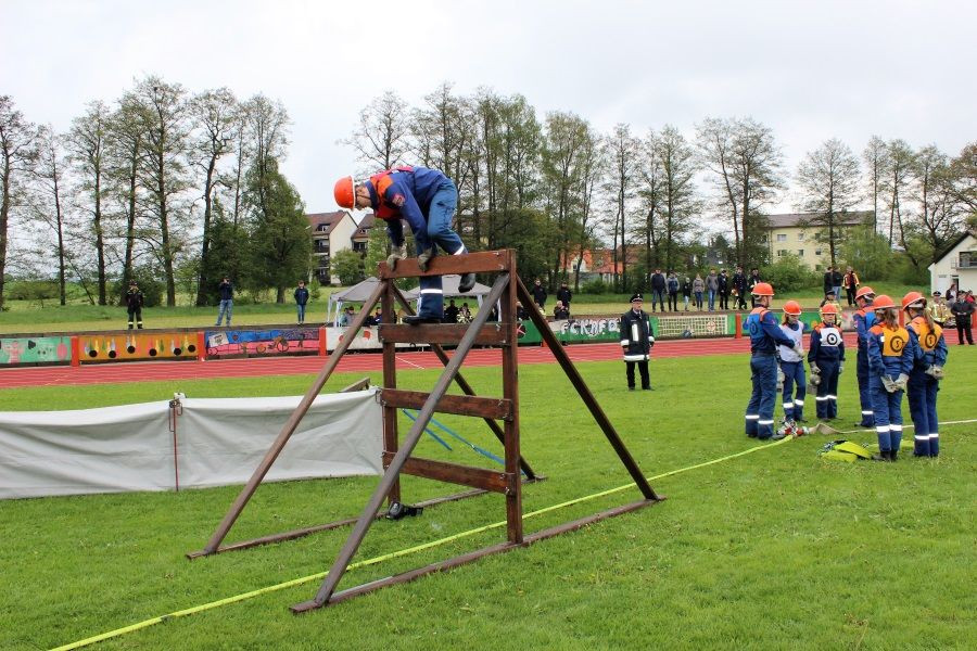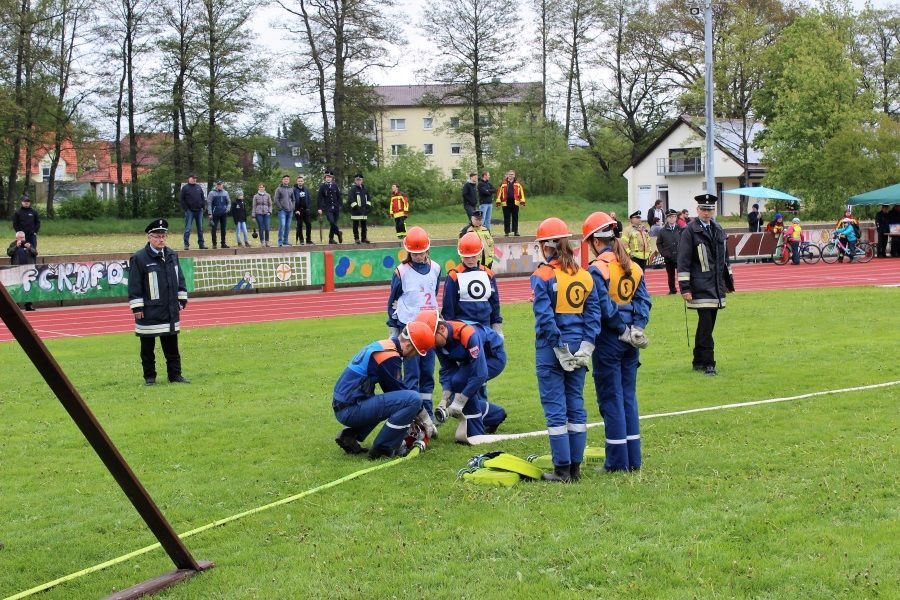 Einen Löschaufbau mit Hindernissen und einen Staffellauf mit feuerwehrtechnischen Aufgaben bewältigten vier Gruppen der Jugendfeuerwehren des Landkreises Tirschenreuth beim Kreisentscheid des Bundeswettbewerbs in Kemnath und qualifizieren sich zum Bezirksentscheid.