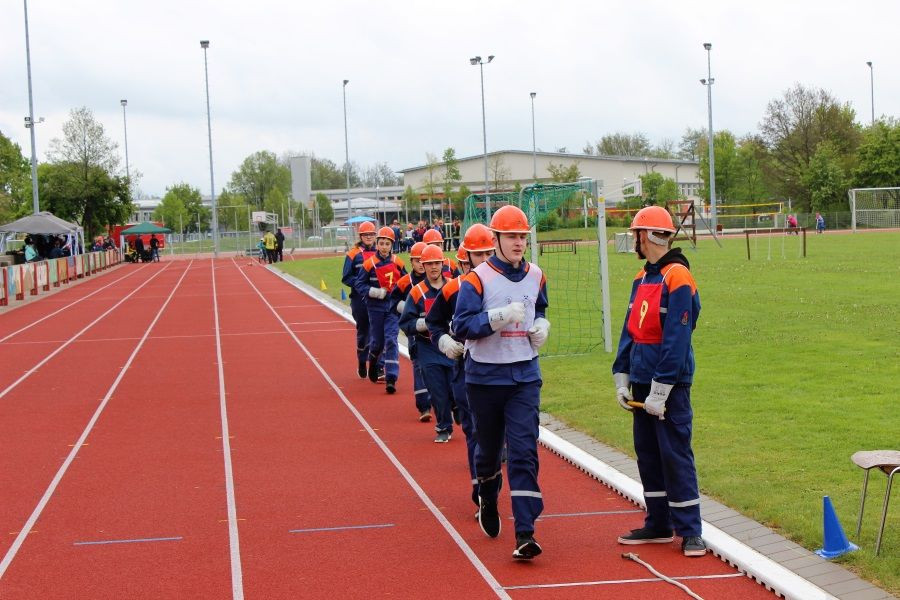 Nicht nur die Zeit floss dabei in die Wertung ein, sondern auch etwaige Fehler wie das Übertreten von Linien, die falsche Handhabung und Ausführung von Tätigkeiten oder das Unterlassen von ordnungsgemäßen Befehlswiederholungen. Ebenfalls stolze und flotte Leistungen erbrachten die Jungs und Mädchen der vier Jugendfeuerwehrmannschaften beim „B-Teil“ des Bundeswettbewerbs, dem 400 Meter Staffellauf, bei welchem nicht nur das Staffelholz schnell weitergereicht, sondern auch feuerwehrtechnische Aufgaben gemeistert werden mussten.