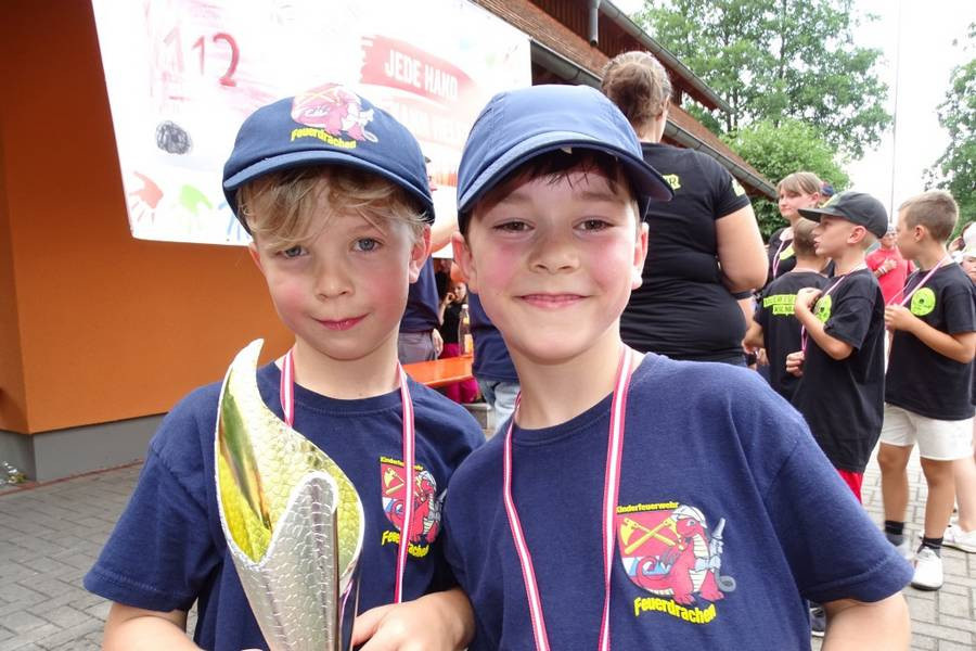 Nachdem alle Mannschaften ihre Laufzettel komplett abgestempelt zurückgaben, erhielten natürlich alle Kids sowie die Betreuerinnen und Betreuer Goldmedaillen. Für die insgesamt sieben Feuerwehren gab es noch je einen Pokal.