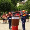 Der Schirmherr KBI Otto Braunreuther hatte noch für jede teilnehmende Wehr eine blaue "Dracheline" dabei, die auch gerne Feuerwehrfrau werden möchte und bei den Kinderfeuerwehren ihre Ausbildung zur Feuerwehrdrachenfrau startet.