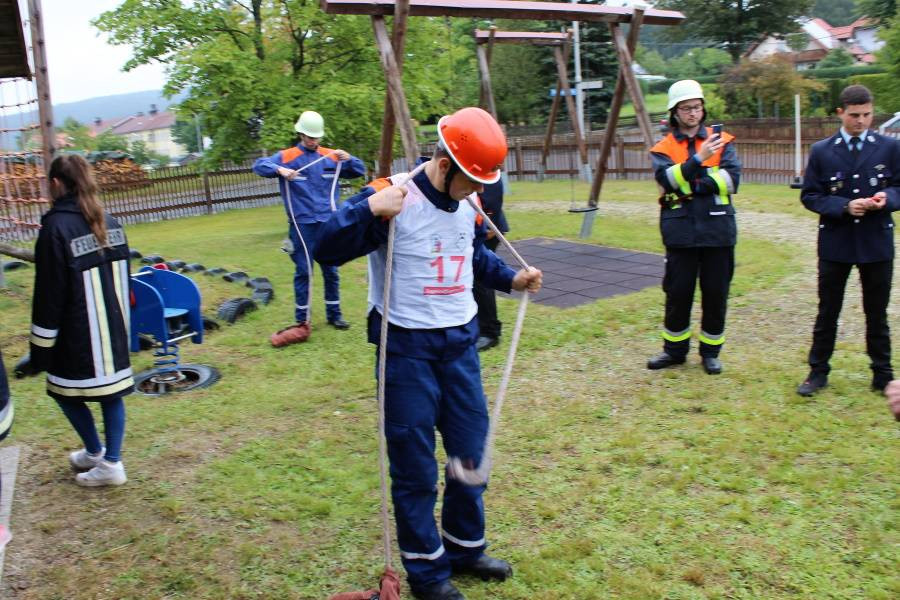 Kameraden aus Bärnau und den umliegenden Feuerwehren aus dem KBM-Bereich 4/3 unterstützten die Schiedsrichter an den Stationen. Die Schiedsrichter wurden von der Landkreisführung, Mitgliedern des Ausschusses des Kreisjugendfeuerwehr, Ehrenmitglied der Kreisjugendfeuerwehr, Ehrenmitglied der Kreisinspektion und weiteren Kommandanten, Vorständen und Freunden der Jugendfeuerwehr gestellt.