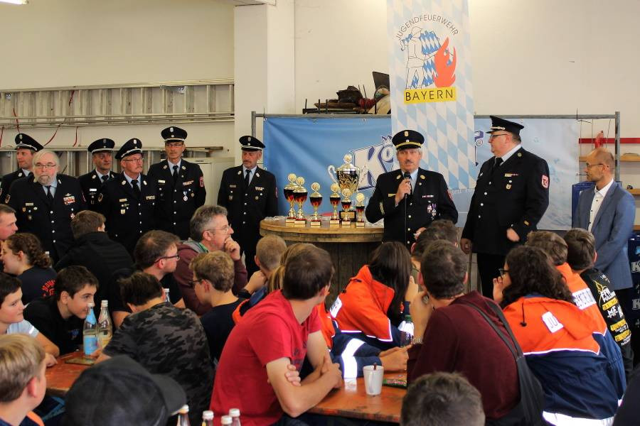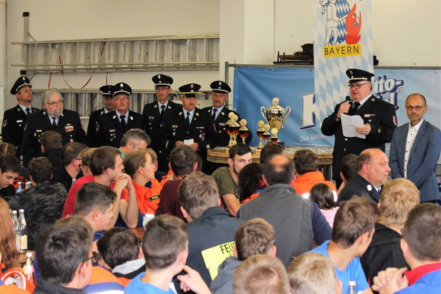 Die Siegerehrung wurde durch den Fachbereichsleiter und Kreisbrandmeister Dieter Höfer durchgeführt. Unterstützt wurde dieser vom KBI Lorenz Müller, KJFW Wolfgang Bauer, dritten Bürgermeister Alfred Wolf und stellv. Landrat Dr. Alfred Scheidler.