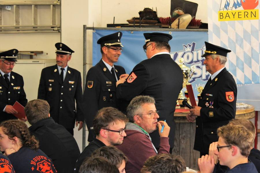 Im Rahmen der Siegerehrung wurden drei Schiedsrichter mit der silbernen Ehrennadel der Jugendfeuerwehr Bayern ausgezeichnet. Die Kreisbrandmeister Albert Fröhlich, Alois Schindler und Günther Fachtan wurden durch den Kreisbrandinspektor Lorenz Müller und Kreisjugendfeuerwehrwart Wolfgang Bauer für mehr als 45, beziehungsweise 32 Einsätze als Schiedsrichter auf den verschiedenen Jugendwettbewerben geehrt.
