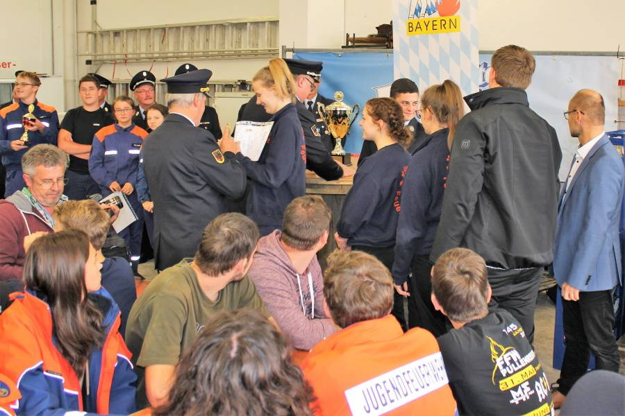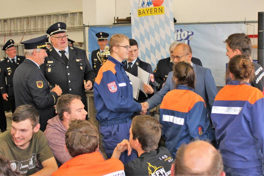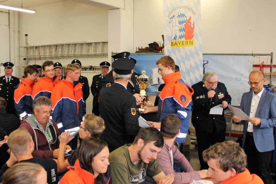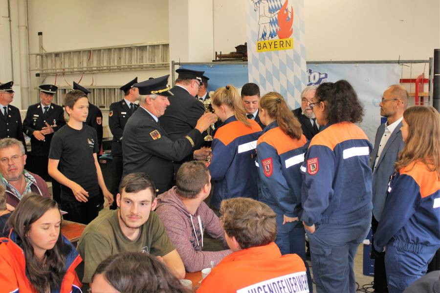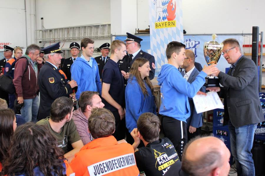 Die Gastjugendfeuerwehr aus Wunsiedel wurde zum zweiten Mal in Folge Zweiter. Der Wanderpokal wurde vom dritten Bürgermeister Alfred Wolf an die JF Guttenberg übergeben.
