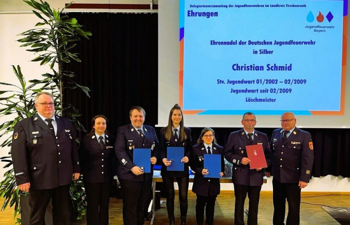 Mit der Ehrennadel in Silber der Deutschen Jugendfeuerwehr wurde Christian Schmid von der Jugendfeuerwehr Kemnath bedacht und geehrt.
