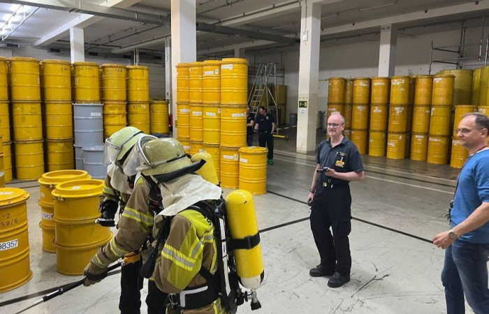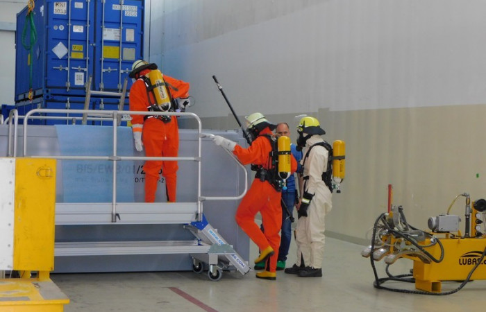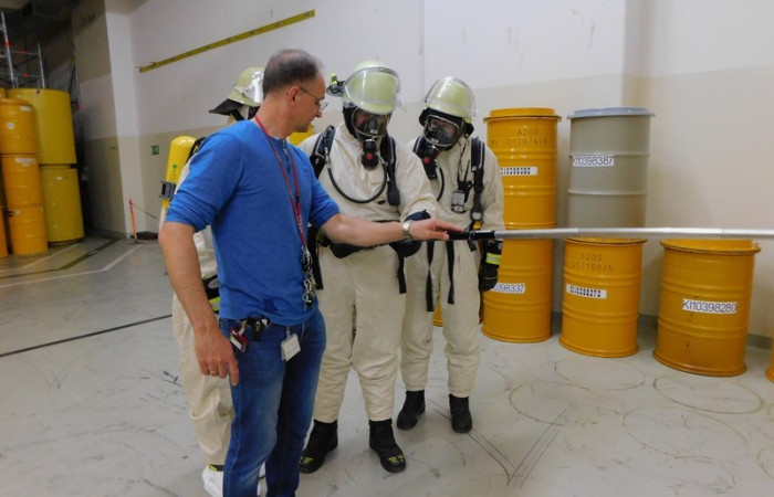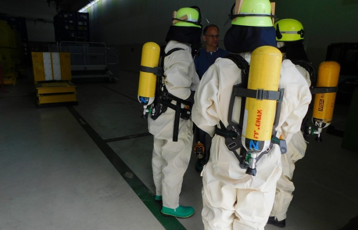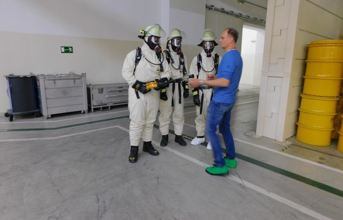 Nachdem die Blaulicht-Kolonne die Werkstore passiert hatte, folgte zum Einstieg ein kurzweiliger Unterricht zum Thema „Strahlenschutz“, der sowohl für Neulinge als auch „alte Hasen“ informativ und unterhaltsam gestaltet war.