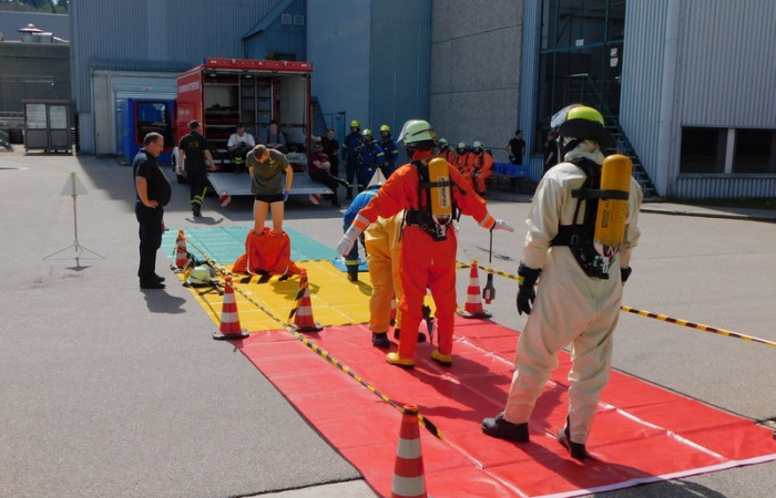 In der Abschlussrunde bedankte sich Fritz Leicht, Leiter des „Runden Tisch Gefahrgut Ostbayern“ beim Leiter der Werkfeuerwehr, Alexander Kiesl, und seinen haupt- und nebenamtlichen Kameraden für die Möglichkeit zur Übung und für die Gestaltung und Begleitung eines lehrreichen und spannenden Tages, sowie bei der Feuerwehr Mitterteich für die perfekte Verpflegung.