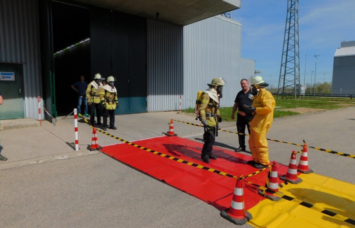 Auf Initiative des „Runden Tisch Gefahrgut Ostbayern“, organisierte die Werkfeuerwehr des KKW eine Messübung, die den ABC-Einheiten des ostbayrischen Raumes die Möglichkeit gab, mit ihren Messgeräten atomare Strahlung unter realen Bedingungen zu üben.