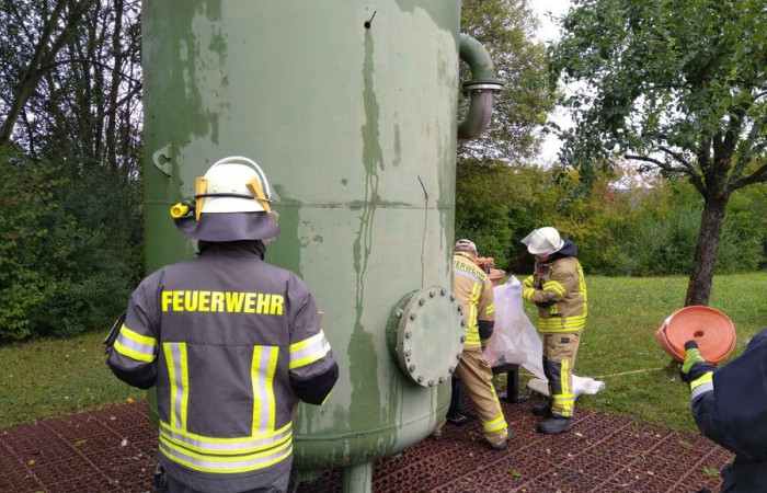 Ein Loch in einer Leitung, ein Riss in einem Tank oder eine undichte Stelle an einem Verschluss – dies waren die Herausforderungen der sieben Übungsteilnehmer des vergangenen „Gefahrgut Praxis“ Lehrganges in Mitterteich und Arzberg.