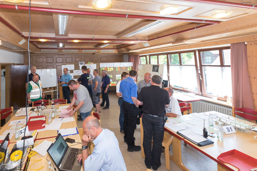 In regelmäßigen Lagebesprechungen wurden die Ergebnisse des Einsatzes ausgetauscht und dokumentiert; der Kontakt zwischen FüGK und ÖEL lief über eine Sondergruppe im Digitalfunk bzw. über Mobilfunk und Festnetz. Nach mehr als fünf Stunden Übung konnte die SFS Geretsried in der Abschlussbesprechung ein positives Ergebnis vermelden. Die Zusammenarbeit zwischen der örtlichen Einsatzleitung und der Führungsgruppe Katastrophenschutz verlief nahezu reibungslos. Besonders wurde die hohe Motivation der knapp 70 Teilnehmer an dieser Stabsrahmenübung hervorgehoben.
