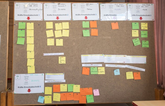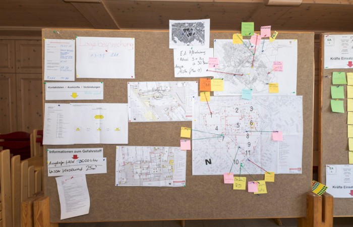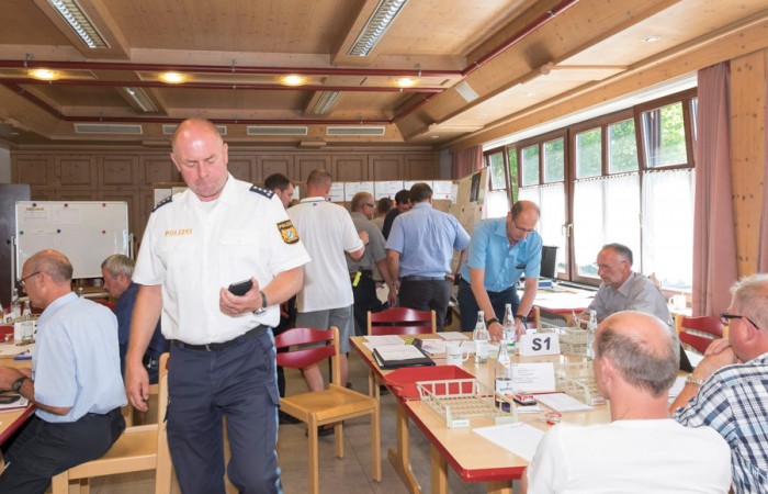 In regelmäßigen Lagebesprechungen wurden die Ergebnisse des Einsatzes ausgetauscht und dokumentiert; der Kontakt zwischen FüGK und ÖEL lief über eine Sondergruppe im Digitalfunk bzw. über Mobilfunk und Festnetz. Nach mehr als fünf Stunden Übung konnte die SFS Geretsried in der Abschlussbesprechung ein positives Ergebnis vermelden. Die Zusammenarbeit zwischen der örtlichen Einsatzleitung und der Führungsgruppe Katastrophenschutz verlief nahezu reibungslos. Besonders wurde die hohe Motivation der knapp 70 Teilnehmer an dieser Stabsrahmenübung hervorgehoben.