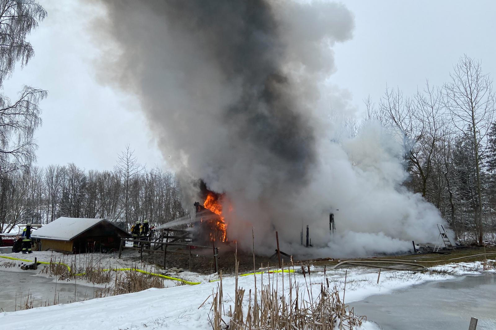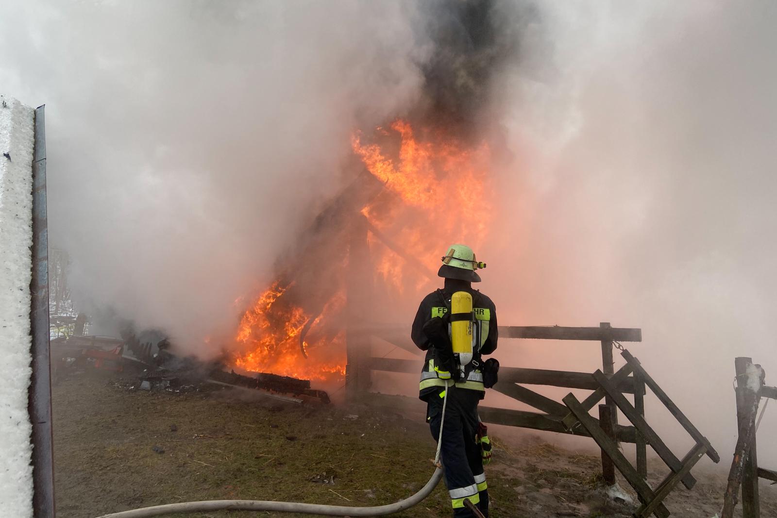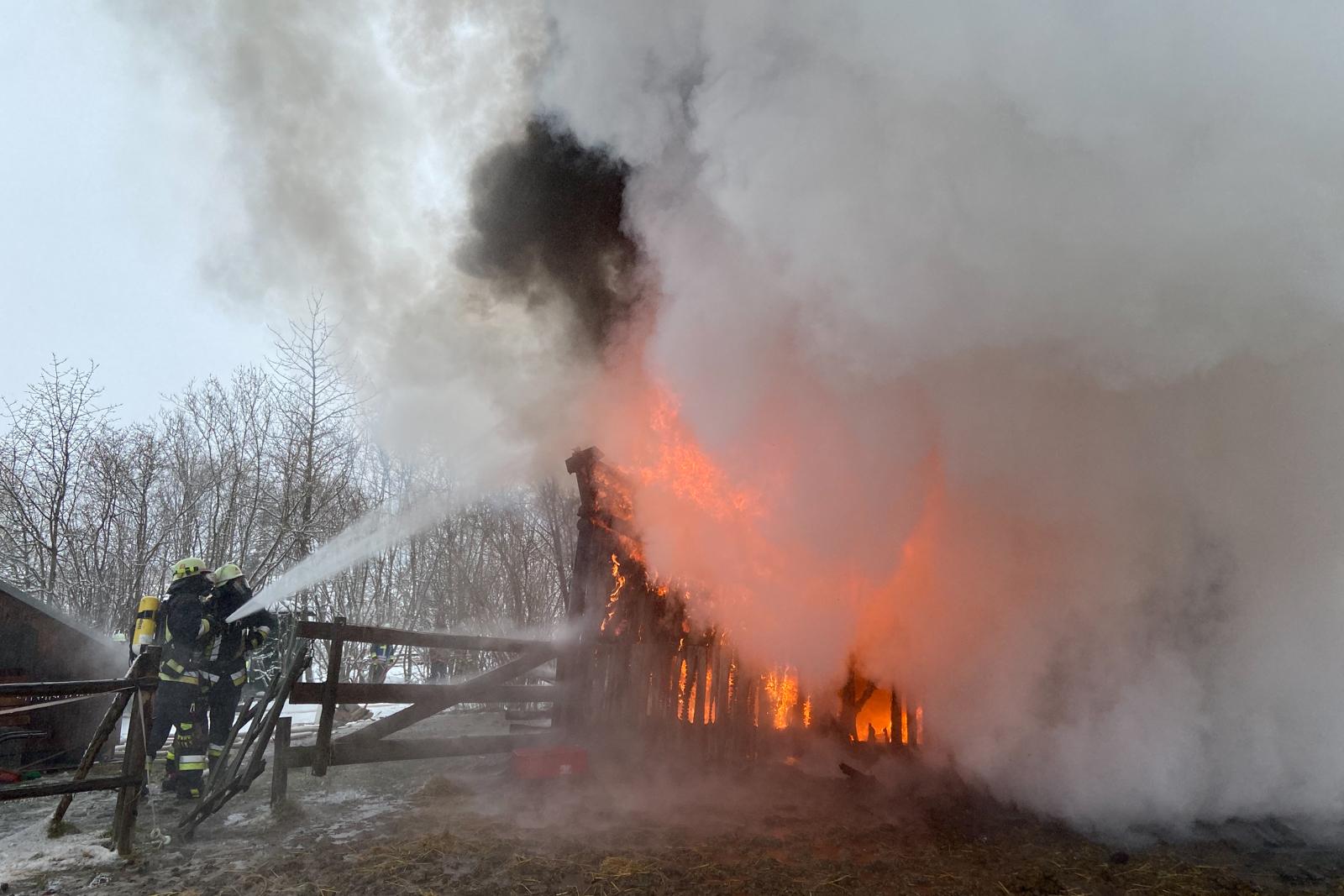 Ein frei stehender Pferdestall geriet in Vollbrand. Auf dem Weg zum Einsatzort musste die Feuerwehr mit erheblichen Problemen kämpfen.